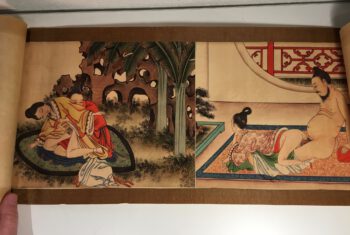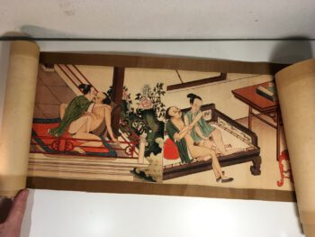Een rol met afbeeldingen van Japanse erotische taferelen. Uniek.