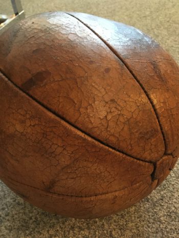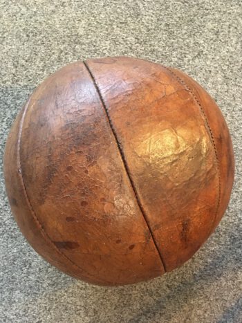 Een vintage leren medicijn bal. Zwaar gehavend maar uiterst decoratief.