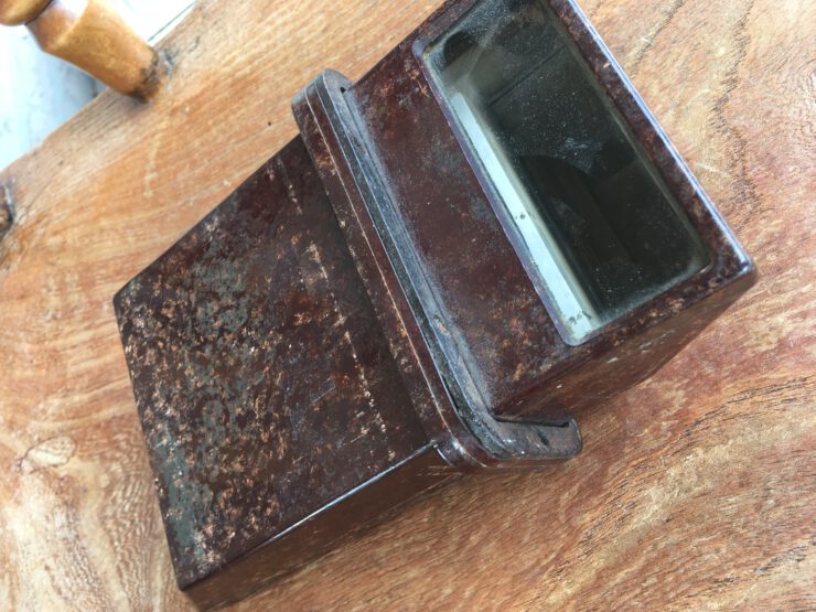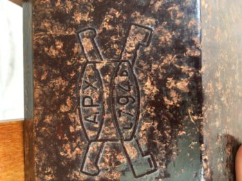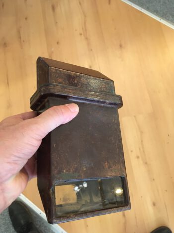 Er is een beschadiging (kogelinslag?) te zien op één van de vensters.