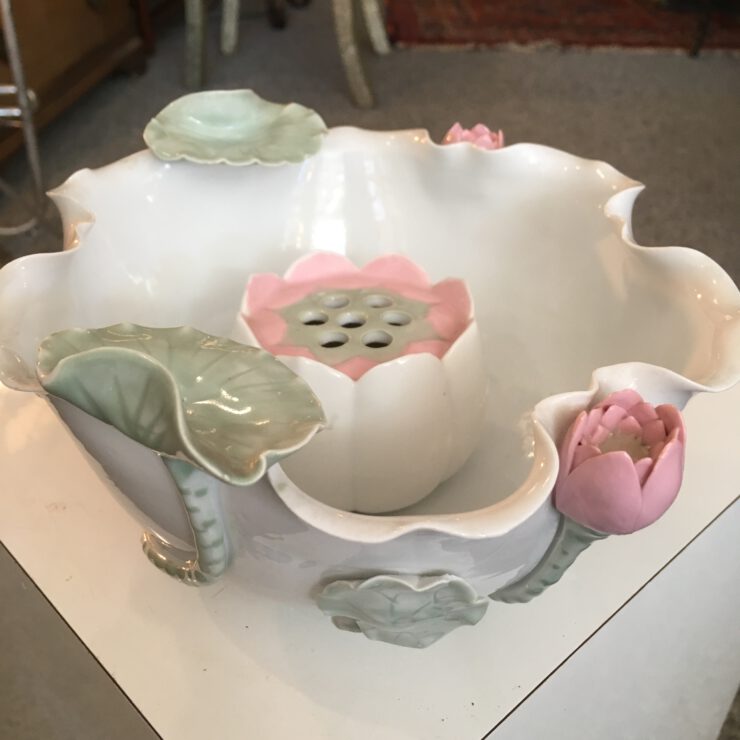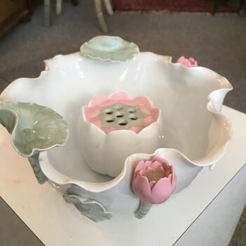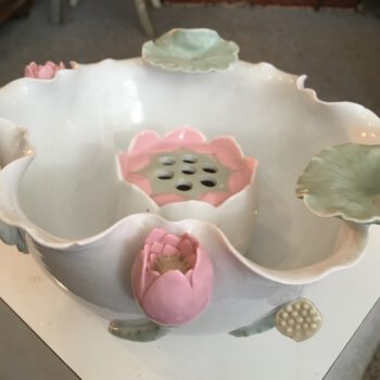 Wit porseleinen rozensteker met rose lotusbloemen. Zeer fijn en in perfecte staat.