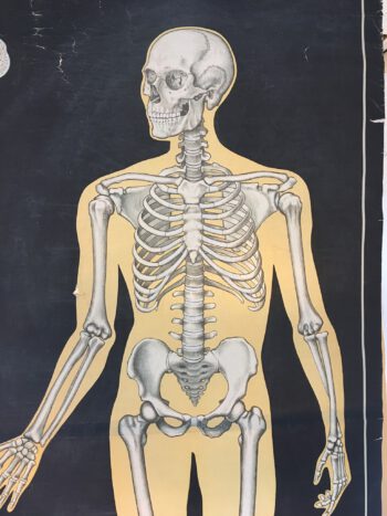 Een mooie oude schoolplaat van de menselijke botten. Duitsland ca 1960. Das Knochengericht. In goede staat.