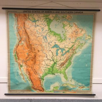Grote schoolplaat landkaart van de USA en Canada op stevig linnen.