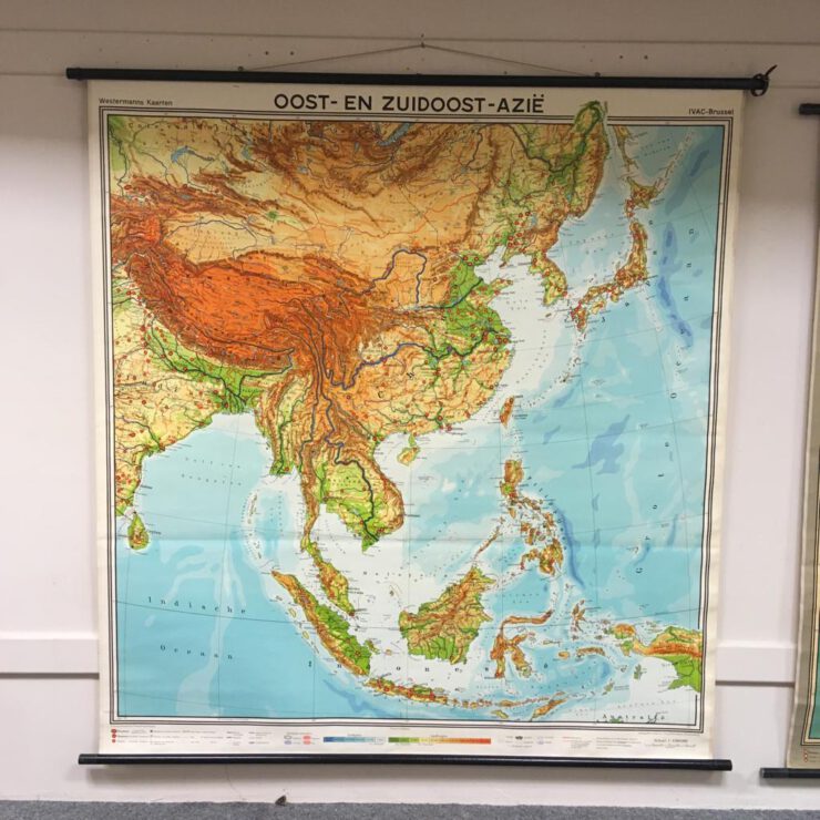 Grote schoolplaat landkaart van Zuidoost Azië op stevig linnen.