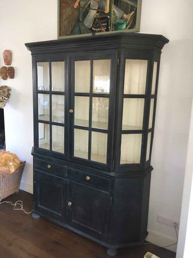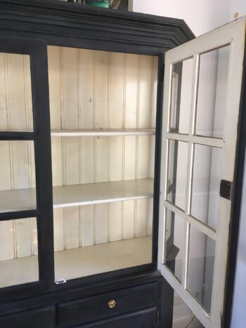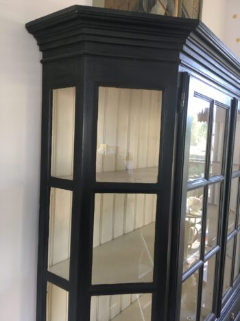 Fraaie vitrine kast in 2 delen. Matzwarte buitenkant.